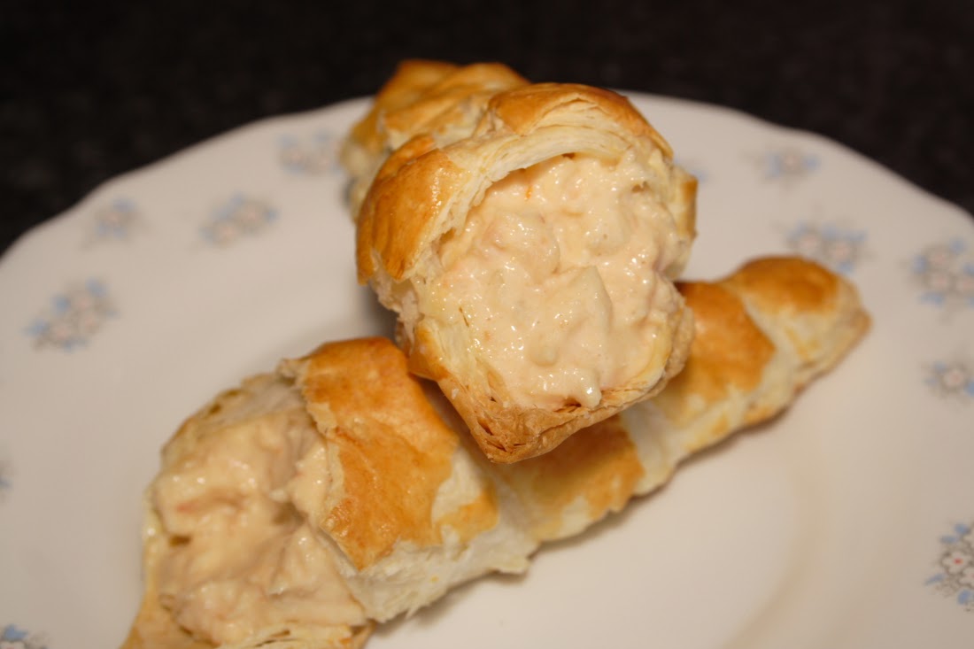 Hoy la receta me la ha pasado una compañera del gimnasio. Lo bueno de esta receta es que hay cosas que podemos hacer de víspera o incluso dos días antes, como por ejemplo los canutillos de hojaldre (de víspera) o el bacalao cocido (incluso dos días antes). En esta receta sólo voy a hacer los canutillos rellenos. Vienen acompañados de gambas y salsa de pimiento, como decoración pero eso no lo voy a tocar.