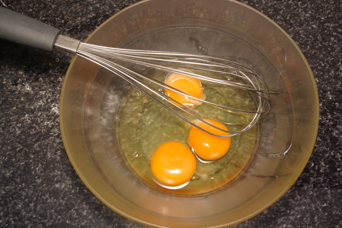 En un bol batimos los huevos, añadimos la leche evaporada y salpimentamos a gusto.