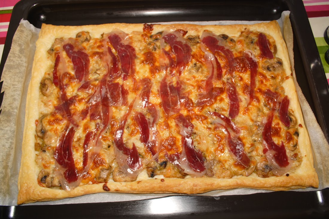 Meter al horno, en la parte central (180ºC calor arriba y abajo), durante aproximadamente 20 minutos, hasta que veáis que el hojaldre esta dorado. Ojo con el hojaldre que no se queme.