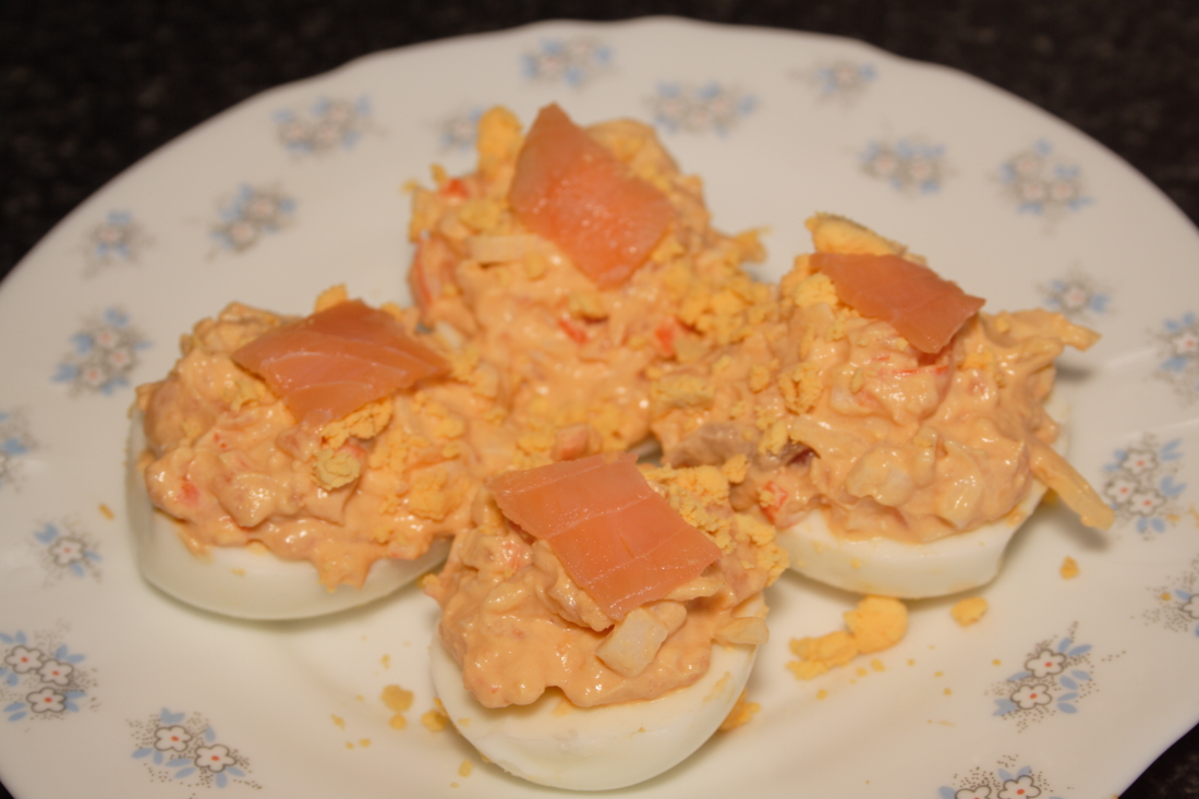 Consejo: Los huevos se pueden cocer la víspera, pero la receta en mejor comerla en el momento. No hemos puesto sal a la receta porque no es necesario.