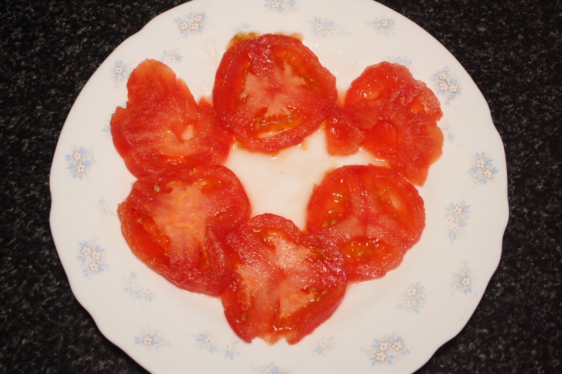 Pelar y cortar en rodajas finas los tomates y reservar.