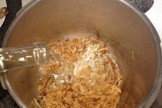* 1 buen chorro de vino blanco.