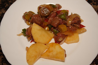 * 500 gr de carne de ternera cortada menuda y a cuchillo. En la carnicería os la preparan.