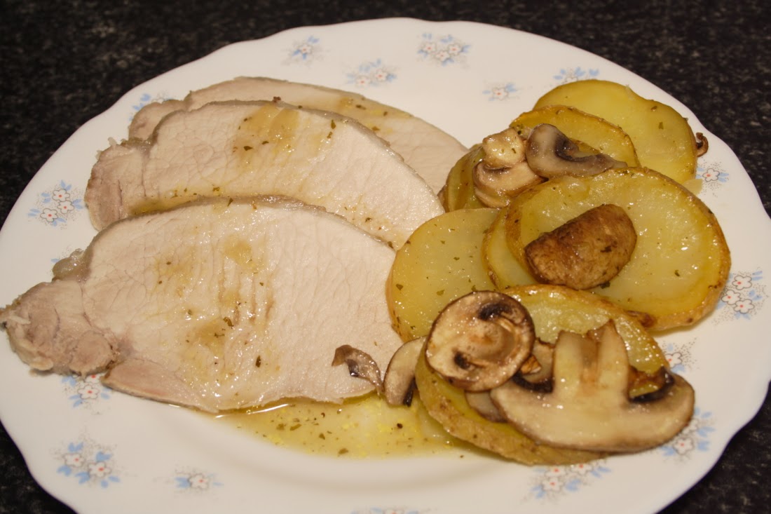 Esta vez haré el lomo con un acompañamiento de patatas asadas «a mi manera» ( receta que esta en el blog) y champiñones asados.
