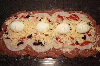 Cuando este todo bien integrado, extendemos la carne sobre papel film, formando un rectángulo y procurando que quede toda del mismo grosor.