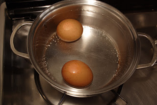 En una olla ponemos los huevos a cocer con abundante agua. Los tenemos 10 minutos, retiramos, dejamos que se templen, pelamos, cortamos en daditos y reservamos. Troceamos el queso y reservamos.