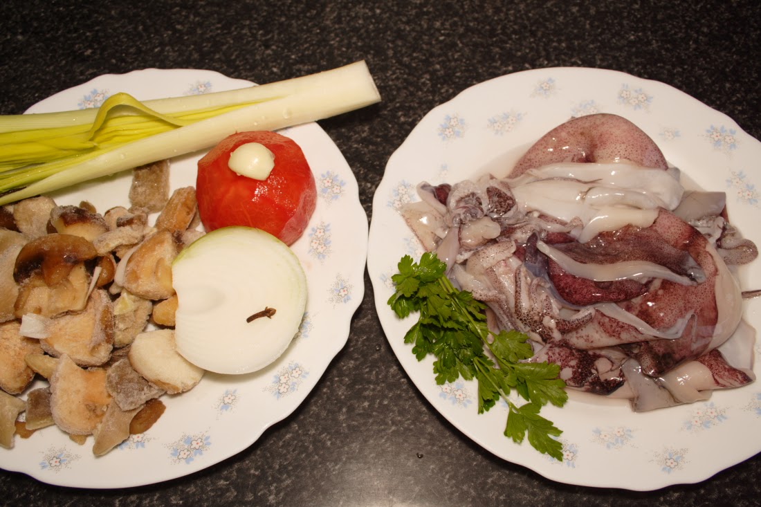 * 8 calamares pequeños.