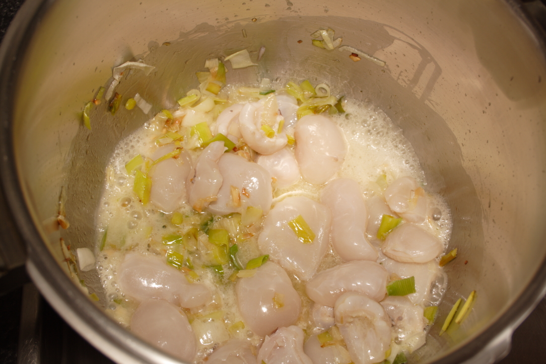 Al igual que cuando cocemos calamares o sepia, el fuego tiene que estar fuerte, sino se quedan correosos.