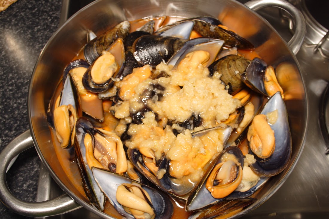 Consejo: La receta no lleva sal. El líquido de cocer los mejillones tiene suficiente.