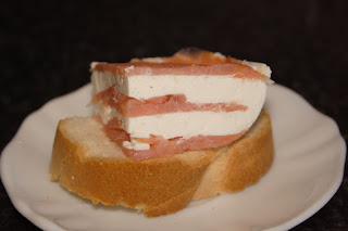 Pasado el tiempo sacamos y cortamos porciones pequeñas, con cuchillo o con cortapastas, y las vamos colocando sobre una rebanada de pan, una tosta pequeña, un pan de canapé…..
