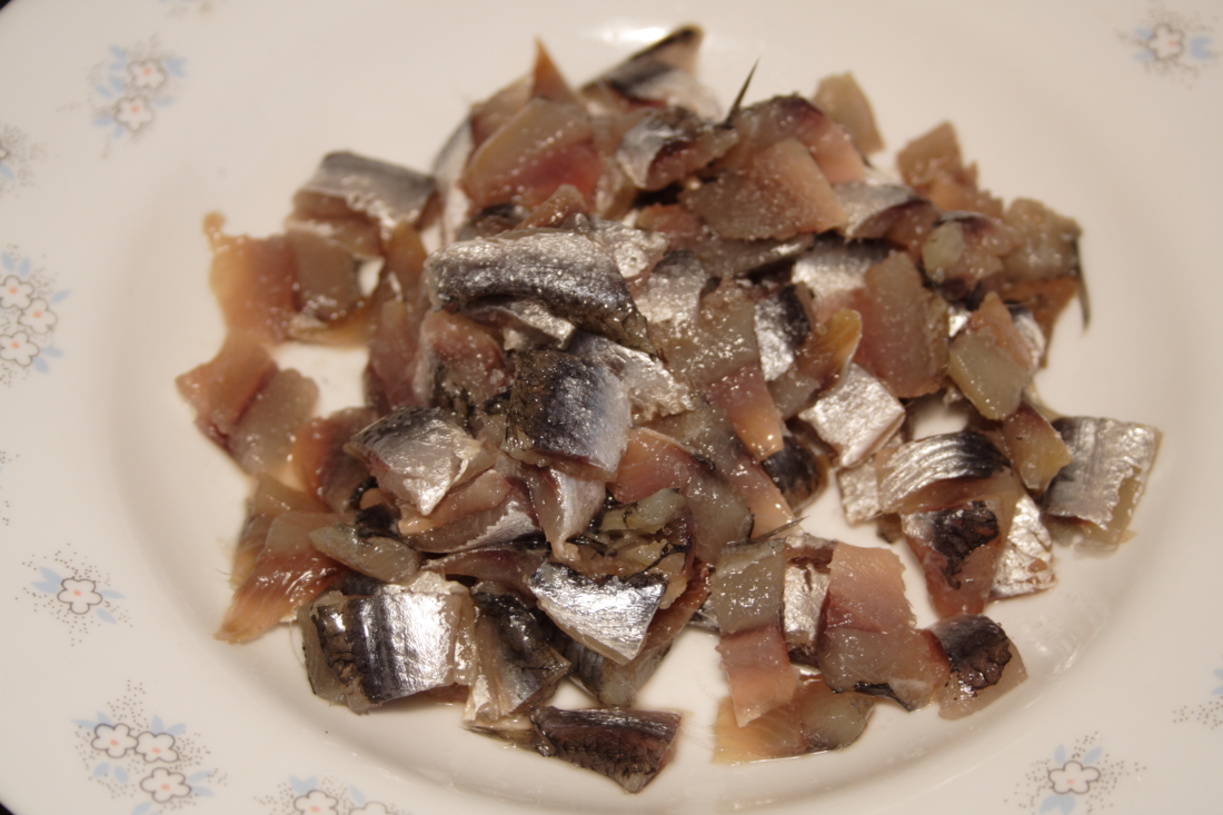 Limpiamos los boquerones, les quitamos la espina central, los troceamos, no muy menudos, sazonamos y reservamos.