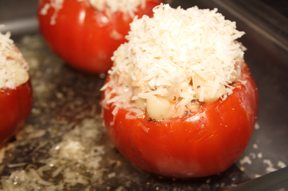 Cuando estén rellenos, les ponemos por encima el queso rallado, a vuestro gusto y los metemos de nuevo en el horno (misma temperatura y posición) durante 5 minutos o hasta que el queso se dore.