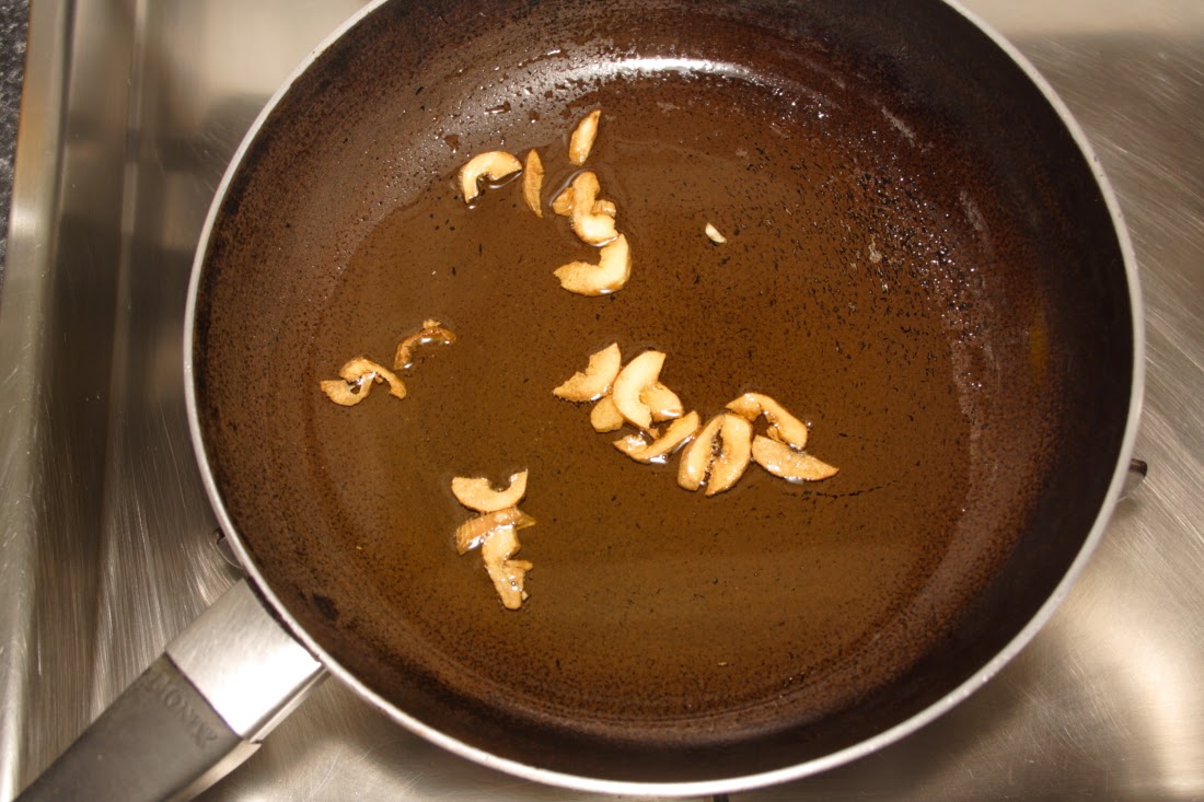 Lavamos los verdeles y reservamos. En una sartén ponemos aceite de oliva y pochamos el ajo cortado en láminas. Cuando se dore vertemos el chorro generoso de vinagre y apagamos el fuego.