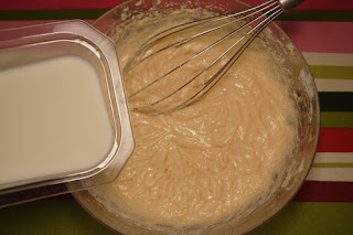En otro bol colocamos la mantequilla a punto pomada, batimos con las varillas de la batidora, añadimos el azúcar, el huevo y la miel. Seguimos montando y vertemos la leche, poco a poco, sin dejar de batir.