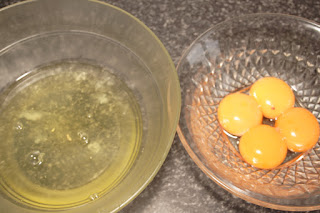 Separamos las claras de las yemas y reservamos.