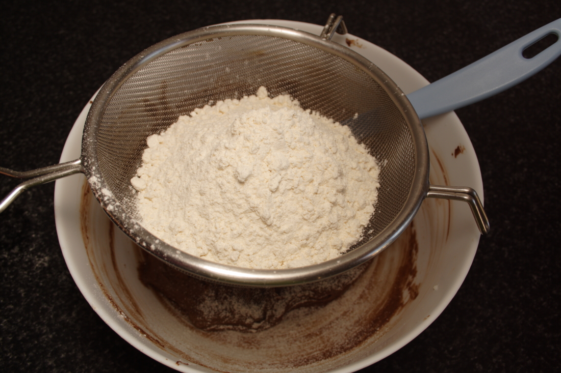Tamizamos la harina y la levadura y las incorporamos a la mezcla anterior con movimientos suaves y envolventes.