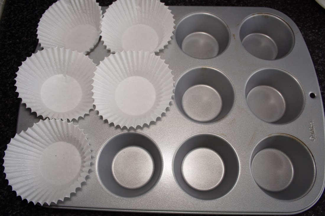 * Mete las magdalenas, con el molde de papel, dentro de unos moldes para “muffins” aptos para el horno, o dentro de flaneras individuales o ponle más de un molde de papel para que no se desparramen.