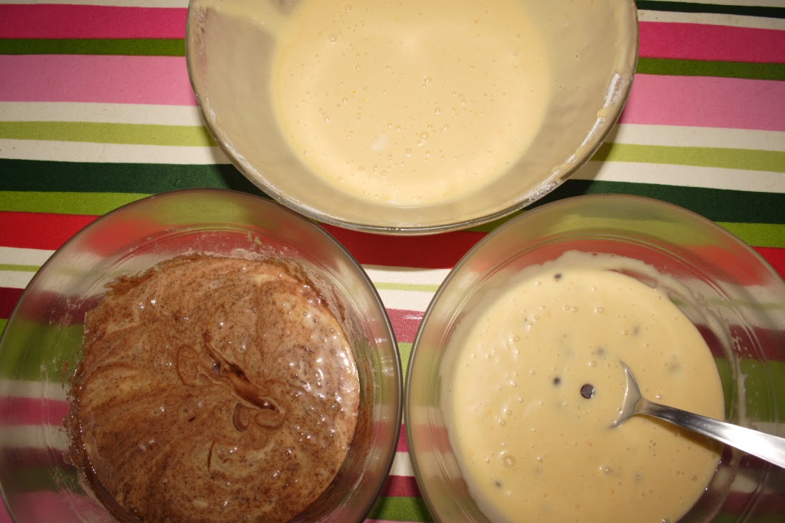 Si queréis las magdalenas de distintos tipos: de chocolate, con pepitas de chocolate… Entonces separar la masa en tres partes. 1/3 para las magdalenas normales, otro 1/3 para las de chocolate, a las que debéis añadir a la masa la cucharada de cacao y el último 1/3 para las de las pepitas donde echaréis la cantidad a vuestro gusto.