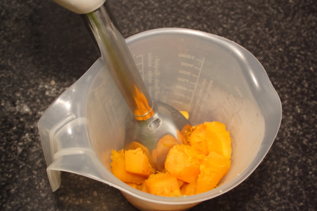 Hecho ese paso, trituramos con la batidora la calabaza hasta que quede reducida a puré. Reservamos.