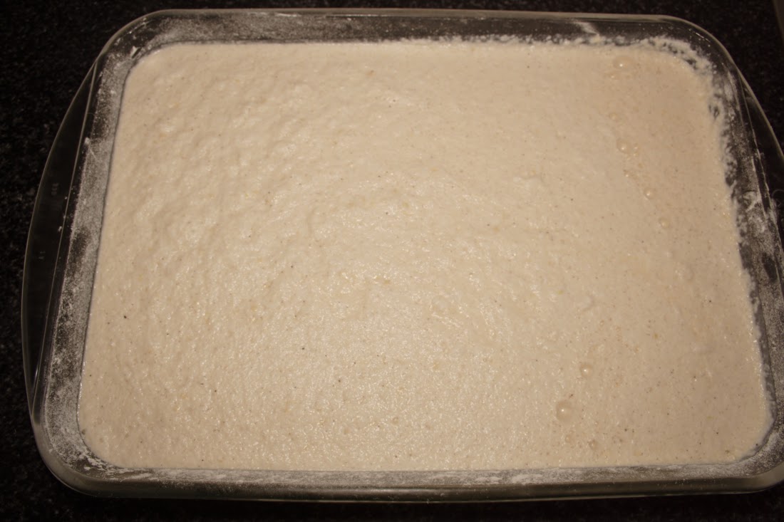 Volcamos esta masa en el molde, la masa queda bastante líquida y con el aspecto de cortada.