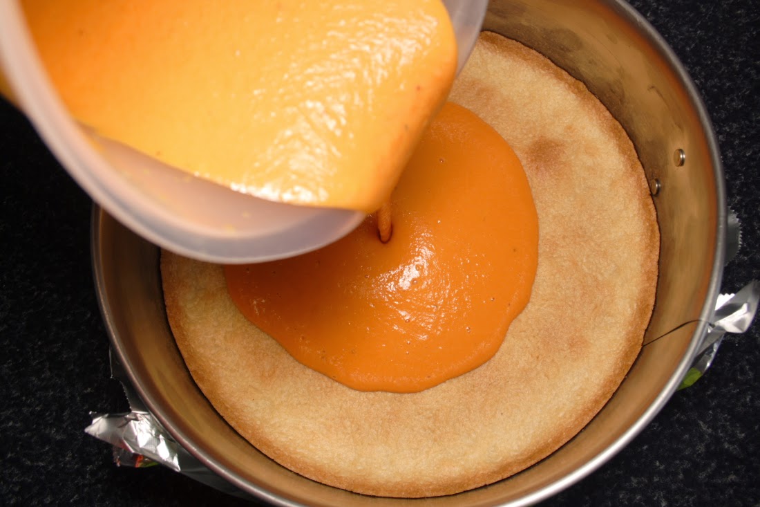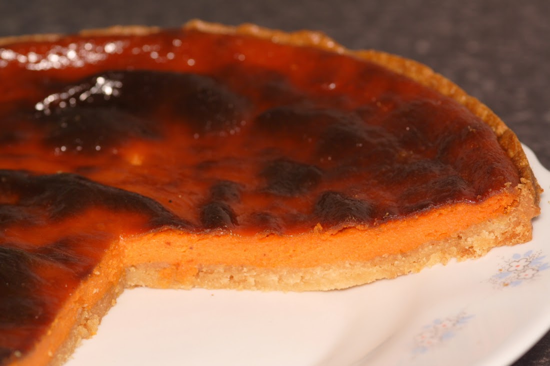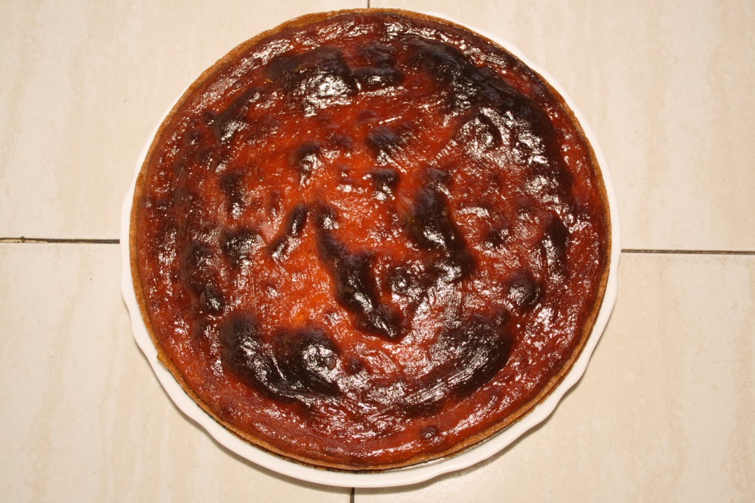 Vertemos la crema sobre la pasta quebrada ya dorada y metemos al horno 180ºC, calor arriba y abajo durante 40 minutos.