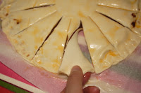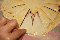 A continuación, cogemos una porción y la retorcemos hacia la derecha, la siguiente hacia la izquierda, la siguiente hacia la derecha, la otra hacia la izquierda y así sucesivamente con toda la tarta. El centro de la tarta quedará parecida a una flor.