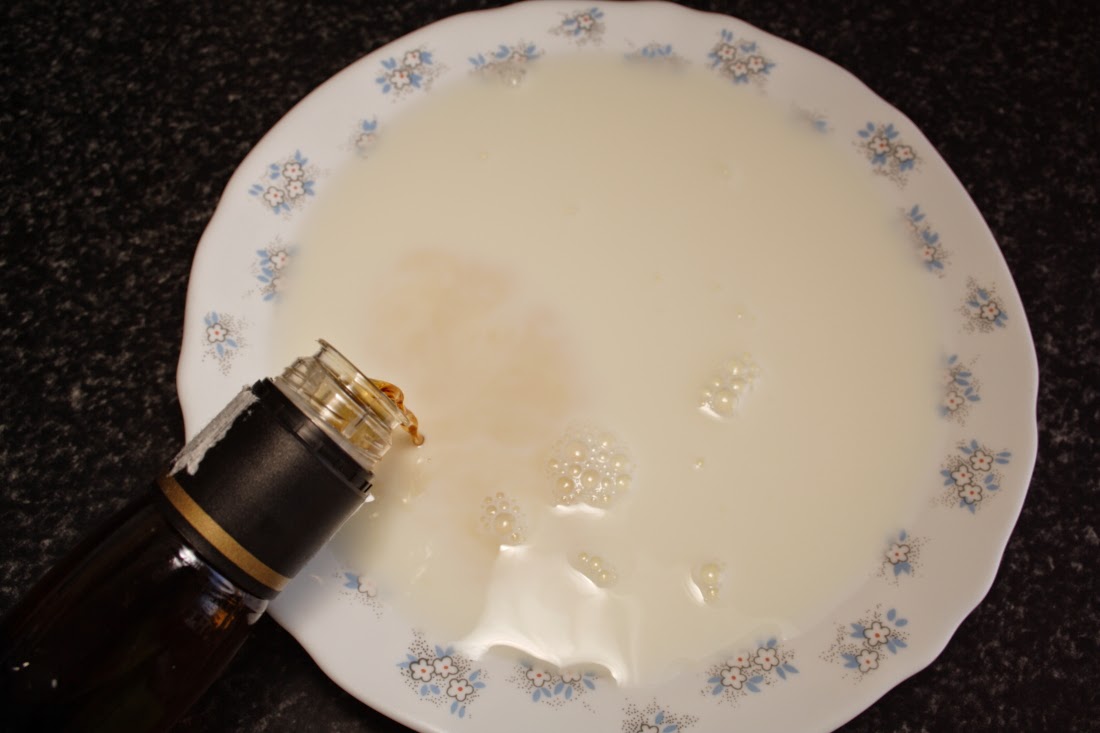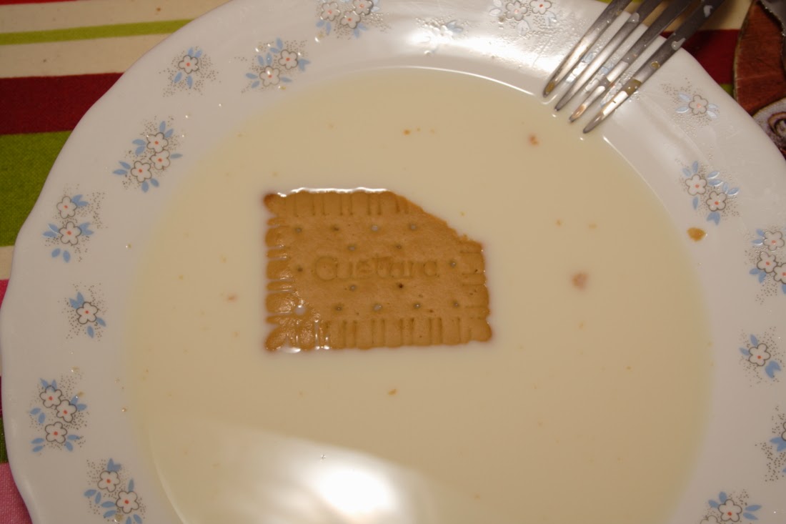 En un plato hondo vertemos leche y el brandy. Metemos en el micro unos 10 segundos, solo para que se temple un poco y así las galletas se empapan antes.