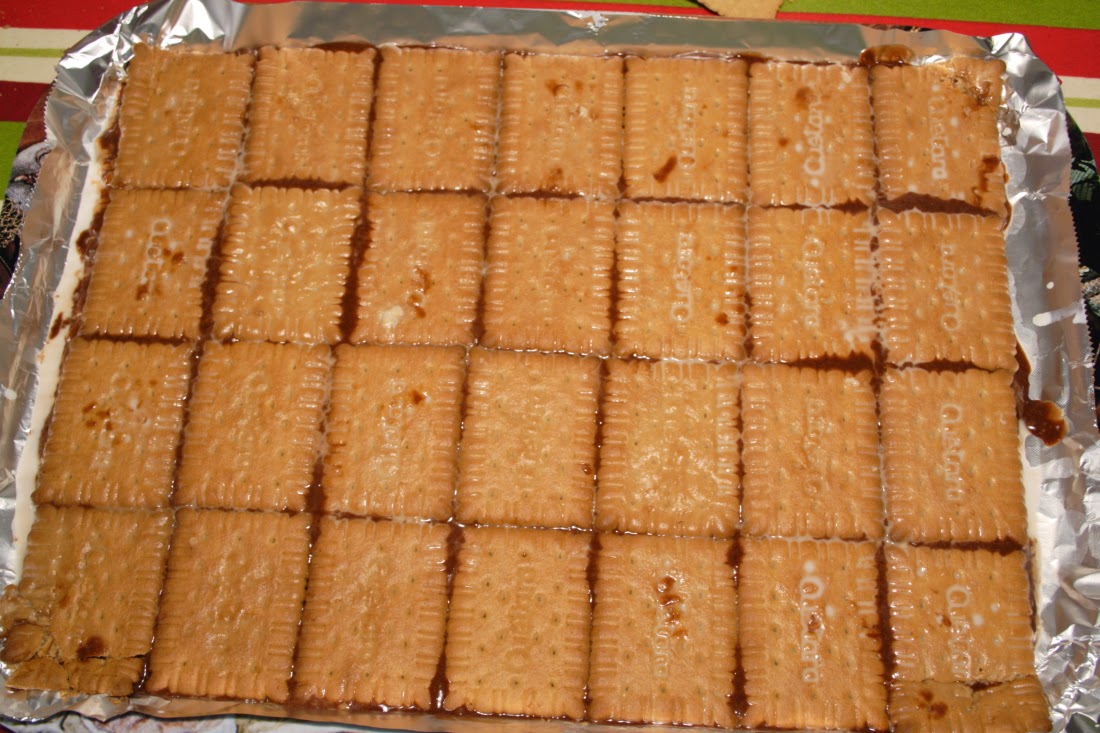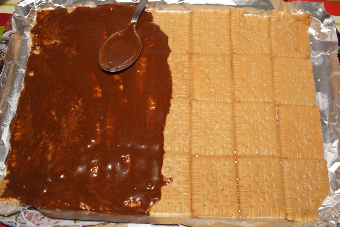 La tarta consiste en poner una capa de galletas, otra de crema de chocolate, una de galletas, otra de crema y así sucesivamente, para terminar con la crema de chocolate. Por ello tendremos que tener cuidado con la crema que nos va quedando, porque al final tienen que quedar las galletas bien cubiertas con el chocolate. Pondremos como mínimo tres capas de galleta. Yo suelo poner cuatro.