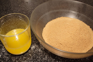 Trituramos las galletas con el accesorio de la batidora para estos menesteres, ponemos en un bol el «polvo de galleta» y echamos la mantequilla fundida en el microondas. Mezclamos todo bien y lo repartimos por el fondo del molde, apretando para que quede una base consistente. Y metemos en el frigorífico mientras preparamos el relleno.