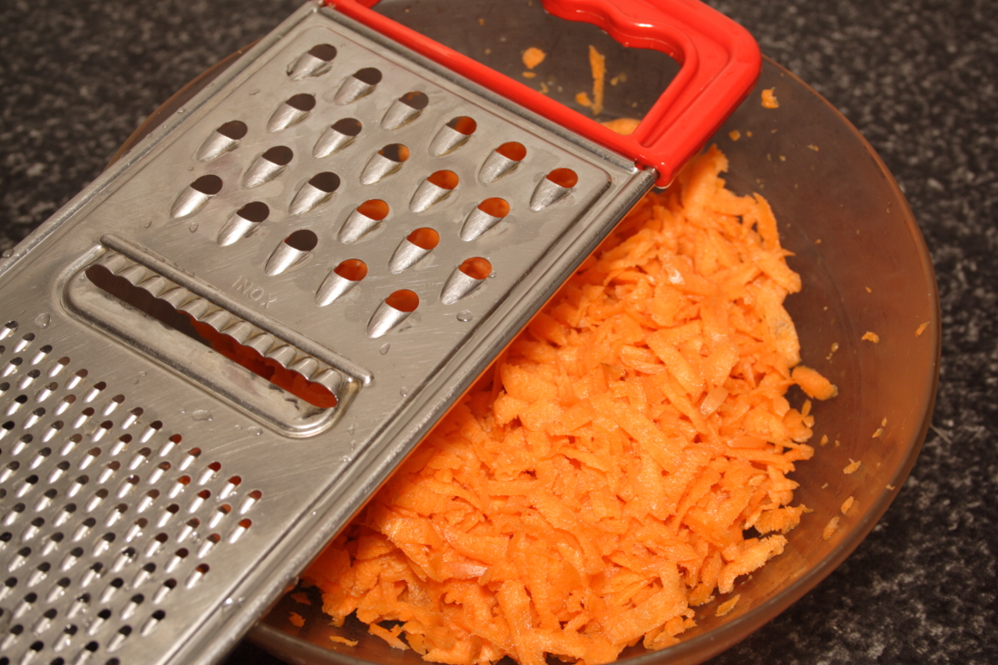 Añadimos la zanahoria rallada y vamos incorporando con una espátula, poco a poco. Echamos la harina con la levadura despacio y la vamos integrando a la mezcla con movimientos envolventes y suaves.