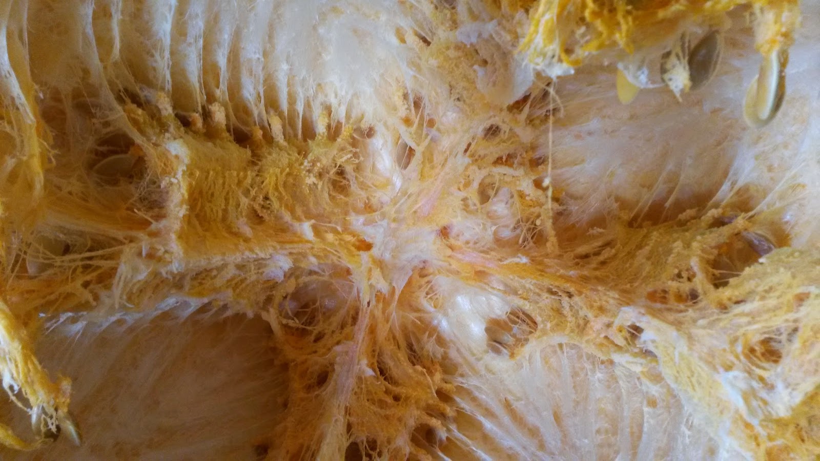 Por dentro es extraña, como ya sabéis tiene las pepitas pero a parte tiene un entramado que parece una tela de araña.