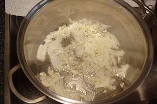 En un olla con aceite de oliva, ponemos a pochar la cebolla, y el ajo.