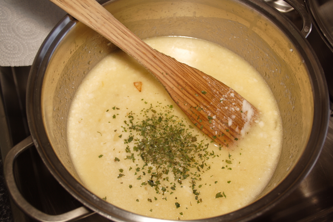 Removemos bien, rectificamos de sal, echamos la pimienta y espolvoreamos el perejil. Dejamos unos minutos y tendremos una salsa sabrosa y rápida de hacer.