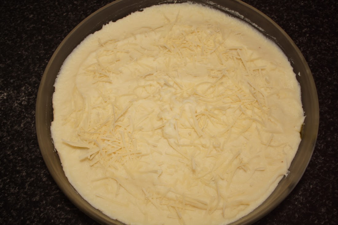 Lo sacamos y vertemos sobre la verdura el puré, repartimos bien con una cuchara y espolvoreamos el queso rallado.